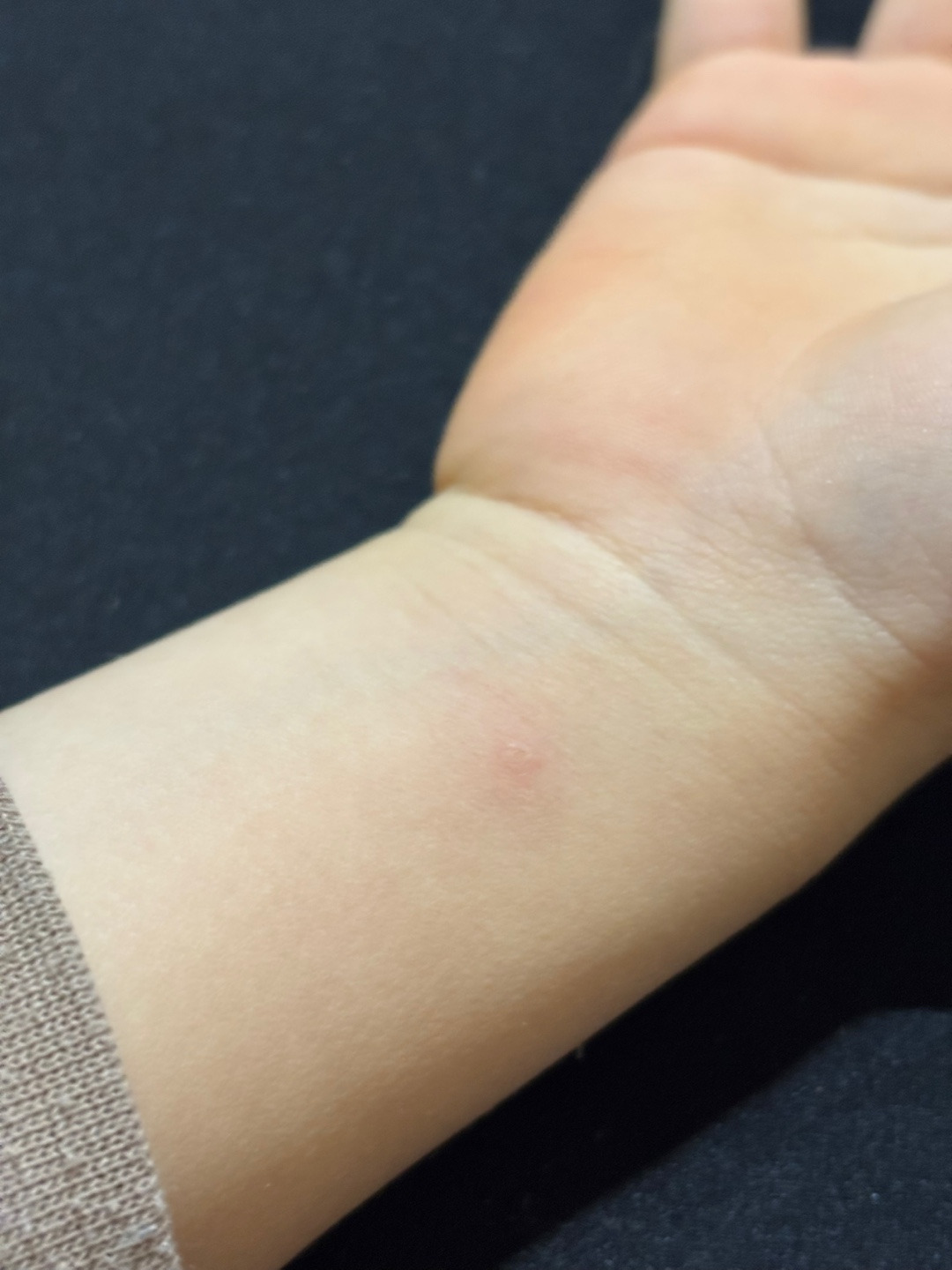 아이와 시간을 보내던 중, 뜨거운 액체 한 방울이 아이 팔목에 ‘톡’ 튀었어요. 가벼운화상이라 볼펜 점처럼 작게 붉어져서 일단 미지근한 물로 5분 정도 화기를 빼주었습니다. 붉기만 하고 아이도 아파하지 않아서 안심하고 있었어요.