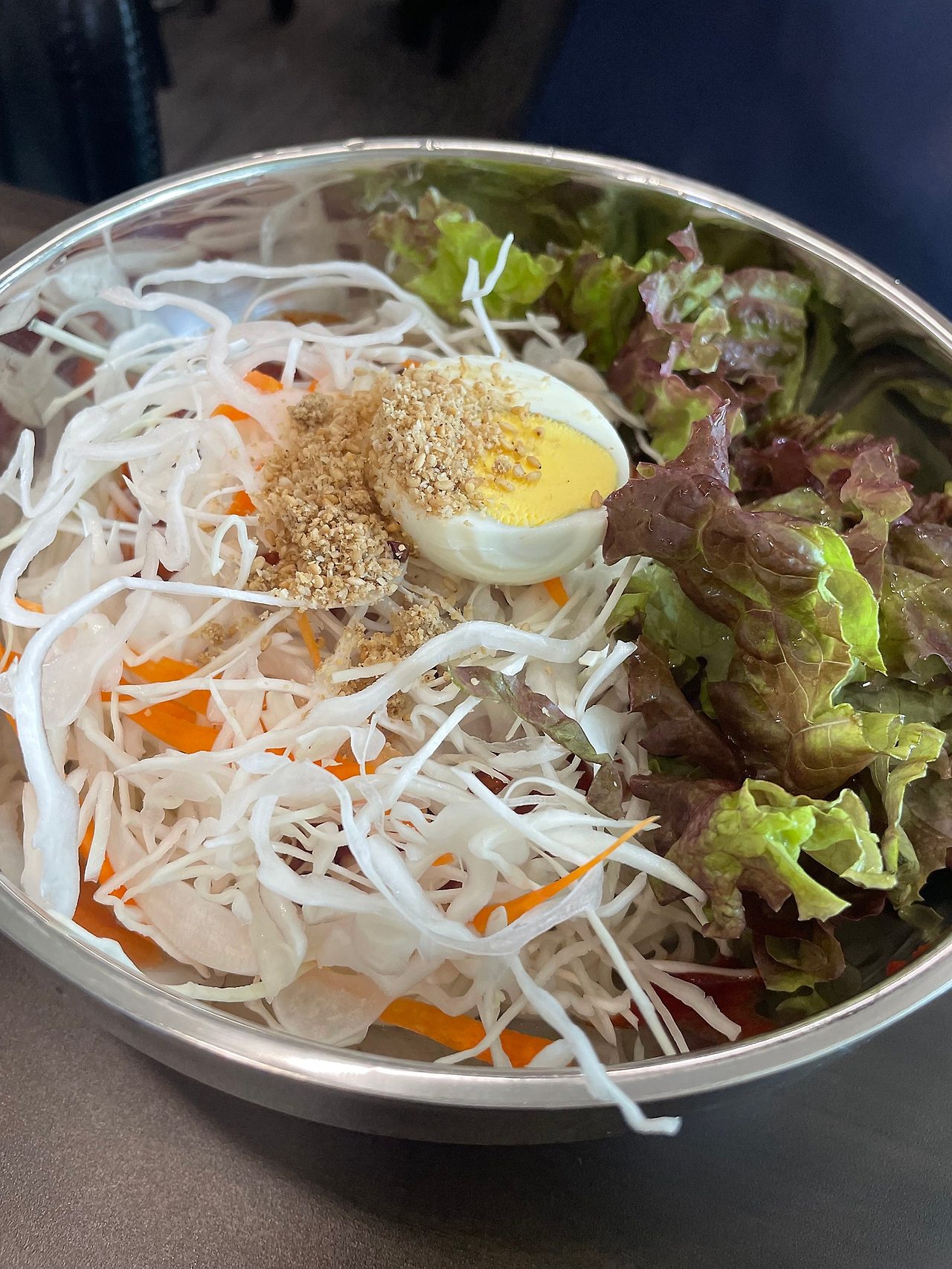- 양배추·상추·계란에 고소한 들깨까지 듬뿍, 비빔 소스가 진하고 촉촉해 퍽퍽함 없이 끝까지 맛있게 먹을 수 있음