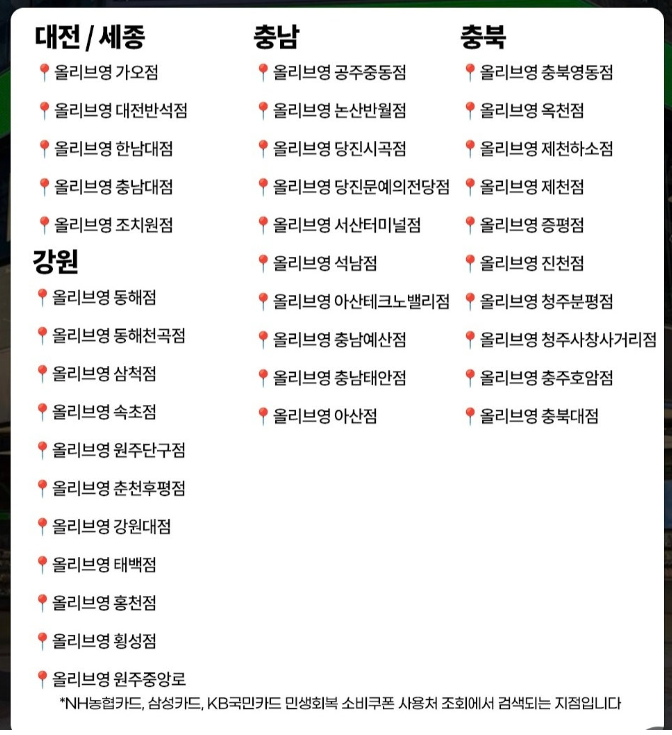 A. 네, 가능하지만 모든 매장이 되는 건 아닙니다. 올리브영 공식 홈페이지에 공지된 가맹점 매장에서만 사용 가능합니다.