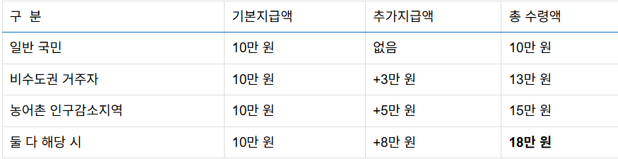 - 금액: 1인당 10만 원 (1차 지급과 별도)