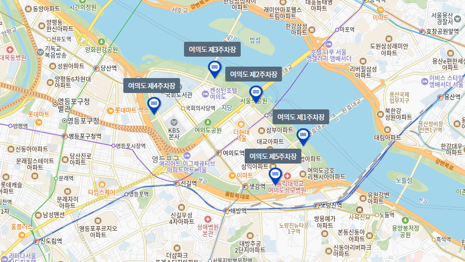 - 일요일·공휴일: 국회둔치주차장, 노상 공영주차장, 여의서로 공영주차장 무료