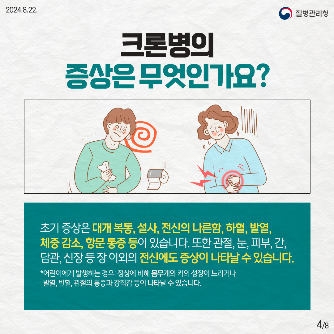 크론병은 완치가 어려운 질환이지만, 꾸준한 관리와 치료로 증상 완화와 삶의 질 개선이 가능합니다.