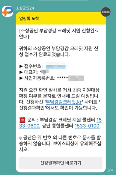 예비 접수를 완료한 소상공인은 부담경감 크레딧 공식 홈페이지를 통해 본인의 신청 상태를 확인할 수 있습니다.